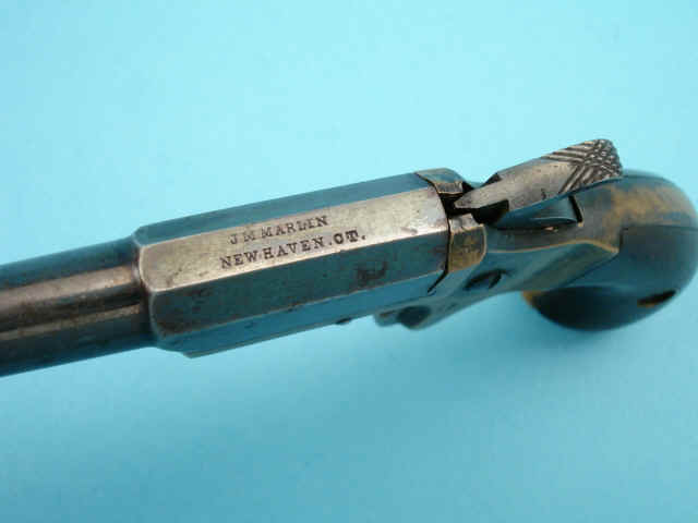 Serial no. 6049, .22 rimfire, 2 1/8-inch barrel, blued, with silver-plated brass frame;