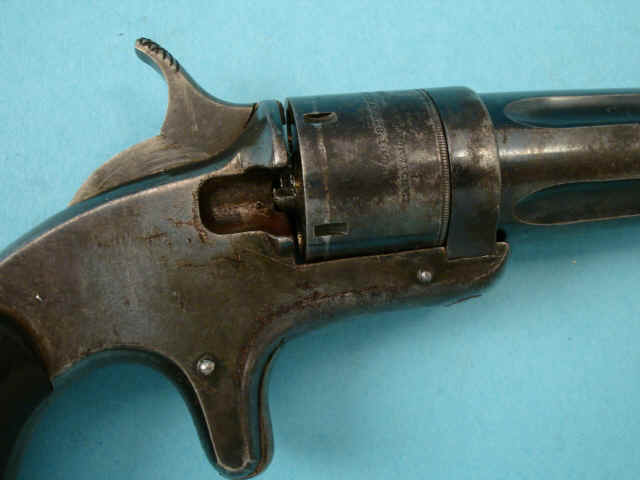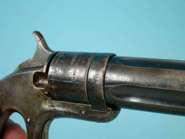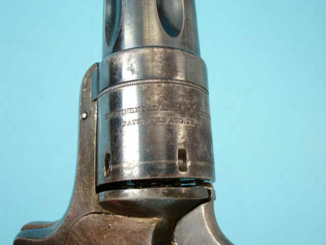 address and patent marking on breech. Pasteboard box with gold imprint of image of gun and