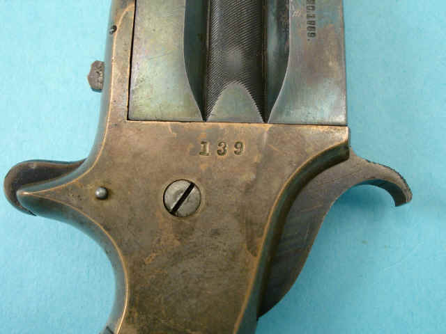Serial no. 139, .41 rimfire caliber, 3-inch barrel cluster; sliding dagger in center;