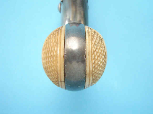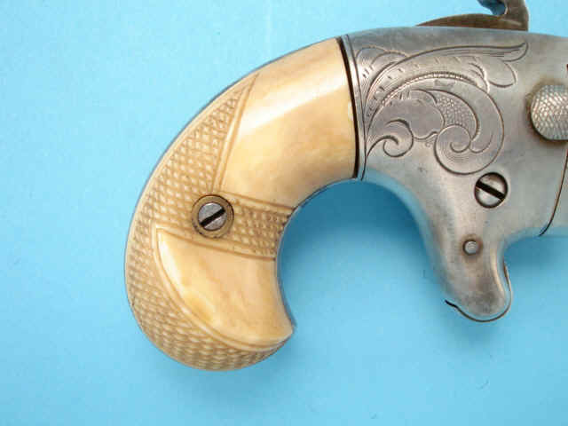 Silver-plated factory-engraved iron frame. Rare factory checkered ivory bird's head grips.