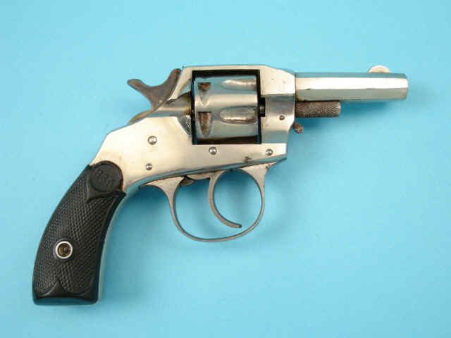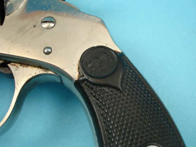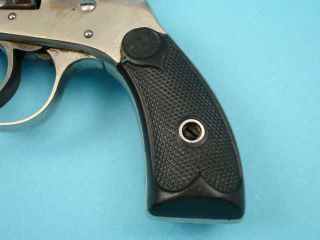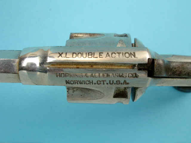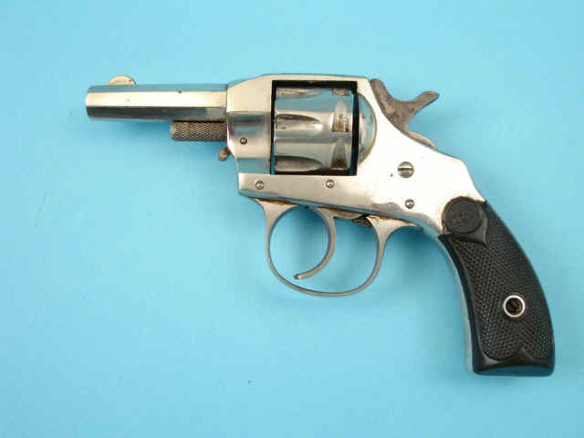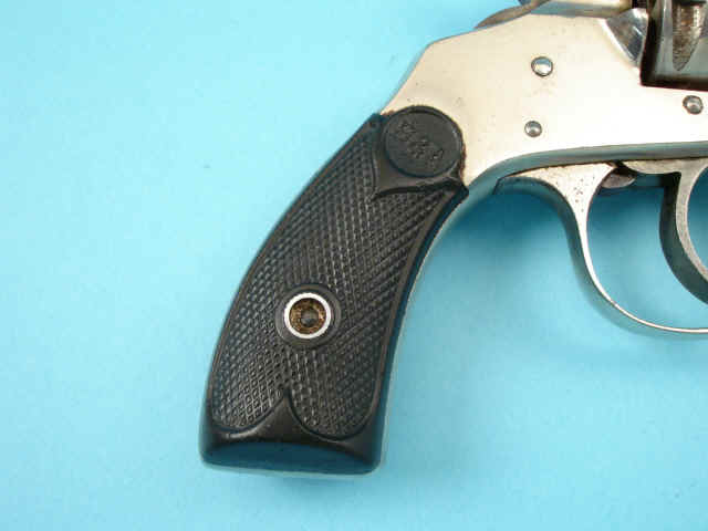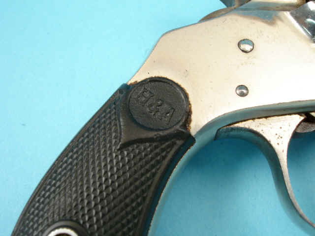 address on topstrap; nickel-plated with case-hardened hammer and trigger; checkered hard