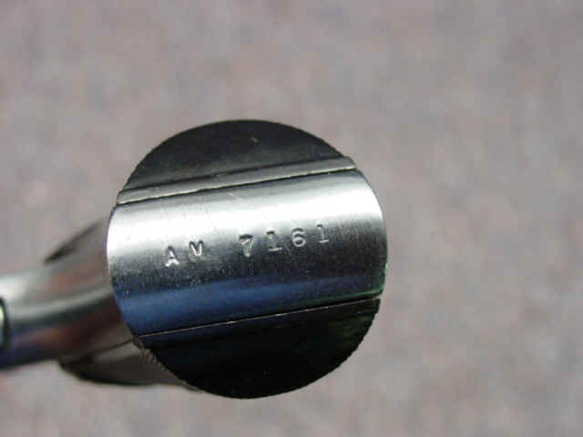 Serial no. AM7161, .22 rimfire caliber, 2 1/2-inch barrel; blued; checkered composition