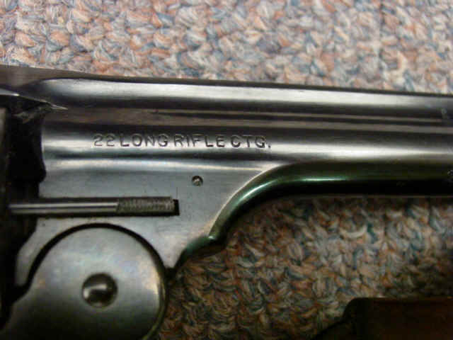 Serial no. D4276, .22 Long Rifle caliber, 6-inch barrel. Blued finish. 9-shot cylinder.