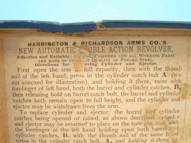 hammer; checkered hard rubber grips. Box with illustrated label inside lid; label also on