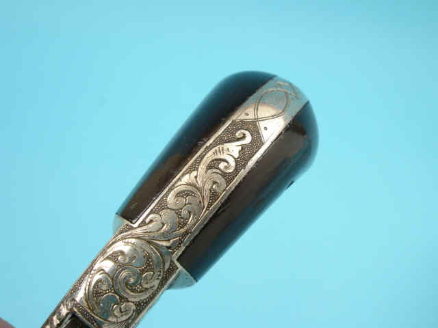 with border engraved barrel; nickel-plated, including brass frame; blued hammer and