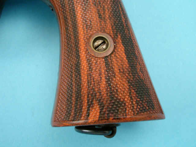 case-hardened hammer and triggerguard; checkered red hard rubber grips. Lanyard ring on