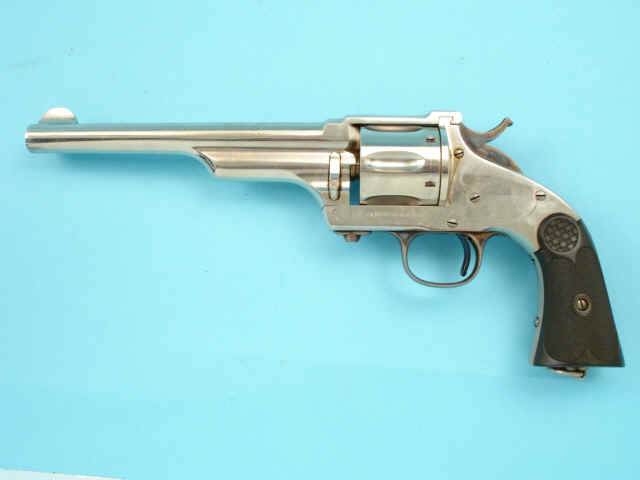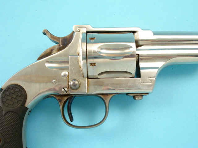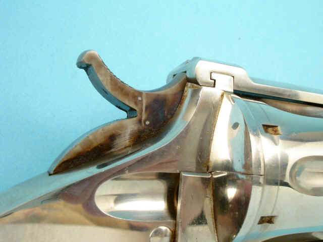 side; caliber on left side of frame; nickel-plated with case-hardened hammer and