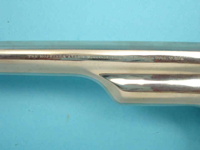 dates on top of barrel; Hopkins & Allen maker, Norwich Conn. U.S.A. address on left
