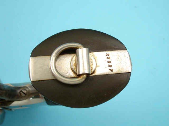 triggerguard; checkered hard rubber grips. Lanyard ring on square butt.