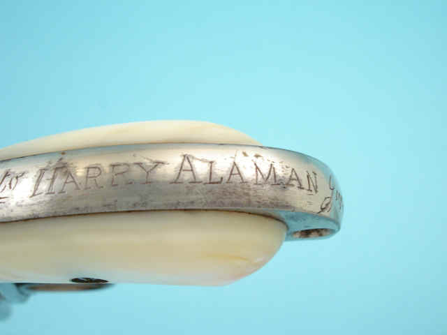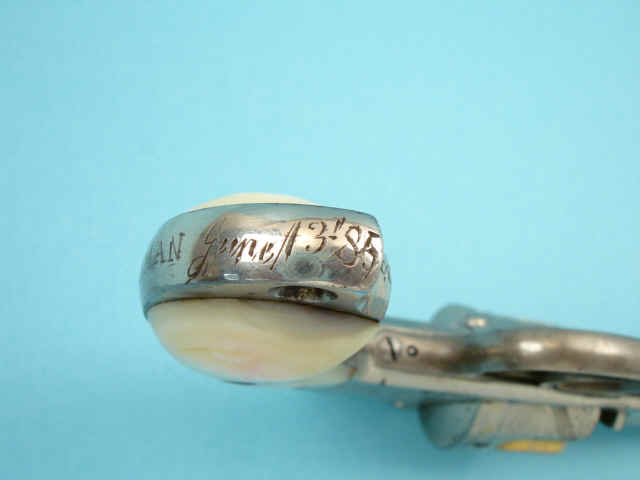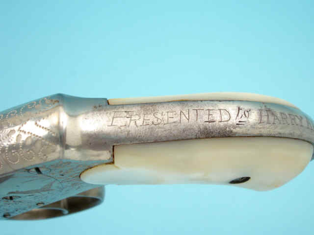 frame; backstrap inscribed: PRESENTED to HARRY ALAMAN June 13" 1885; inside of
