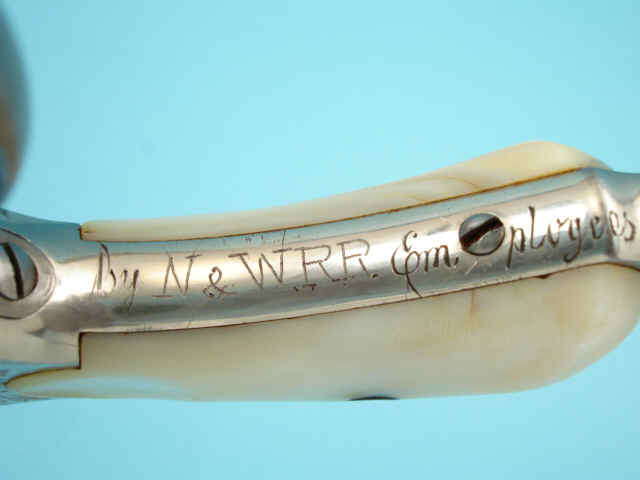 gripstrap inscribed: By N & WRR Employees. Nickel-plated with gold-plated cylinder and