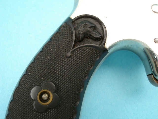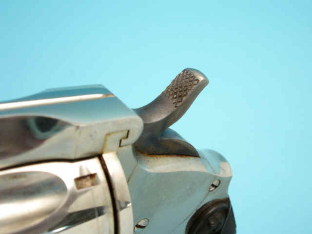 scooped flute cylinder, nickel-plated with case-hardened hammer and trigger and checkered