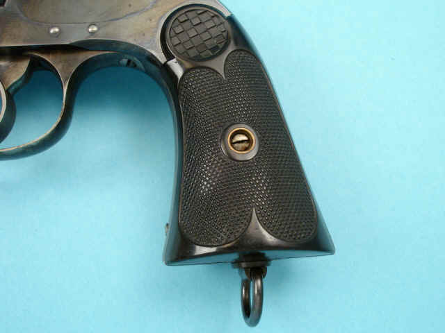 bottom to folding hammer, triggerguard and trigger; checkered hard rubber grips; lanyard