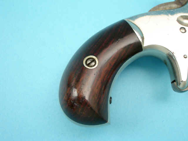 markings; nickel-plated, with case-hardened hammer and trigger; varnished rosewood grips.