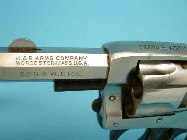 checkered hard rubber grips. Pasteboard box with repeated H & R monogram design on top