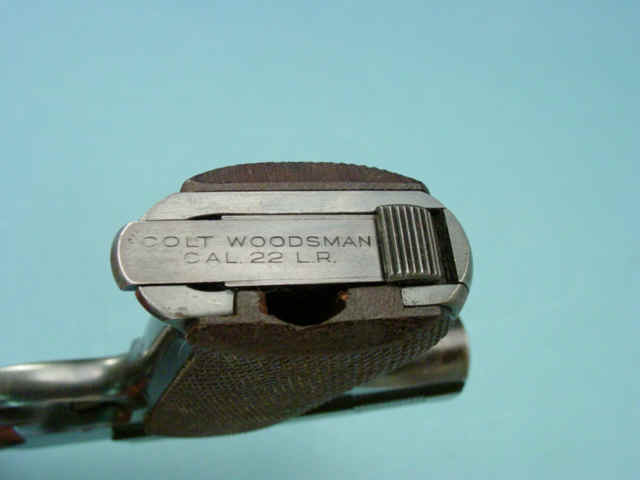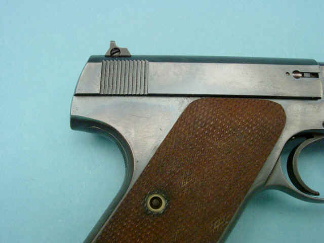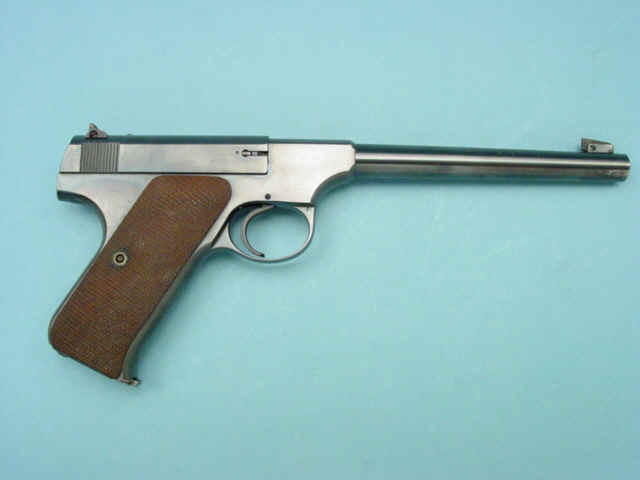 Serial no. 101923, .22 long rifle, 6-inch barrel, blued finish; checkered walnut grips;