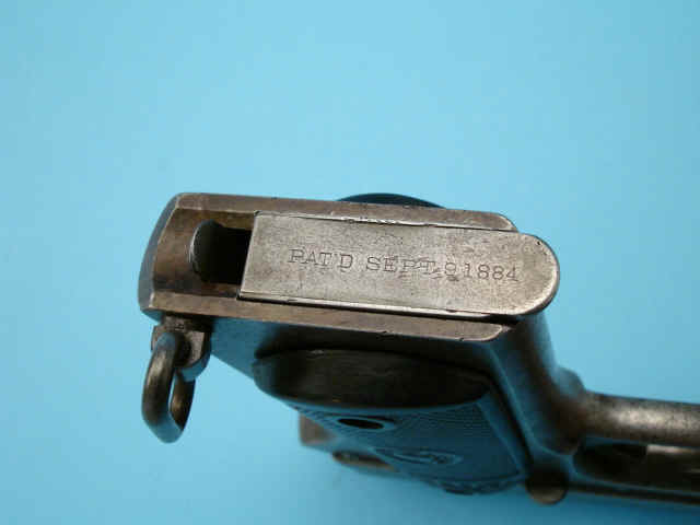 Serial no. 13049, .38 rimless caliber, 6-inch barrel. Rounded hammer spur. Colt hard rubber grips. Lanyard ring.