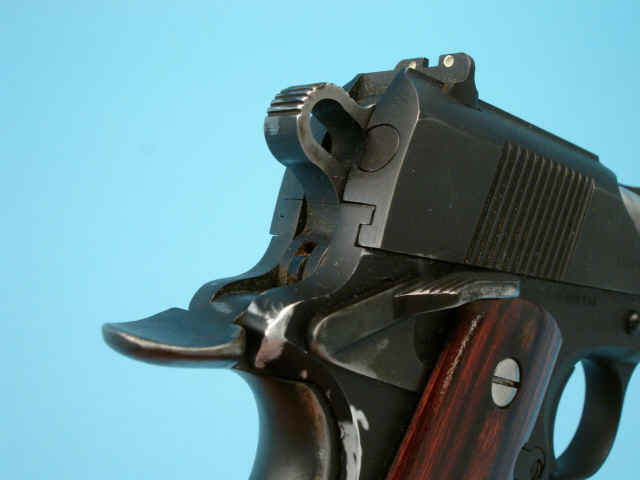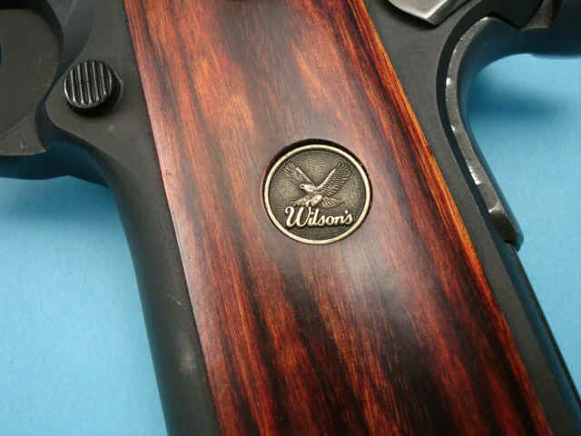 Skeletal trigger. Matte grey finish. Exotic custom Wilson hard wood grips with medallions.
