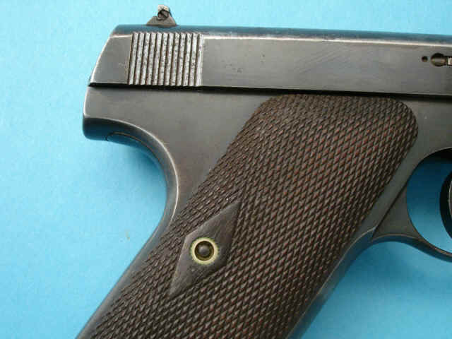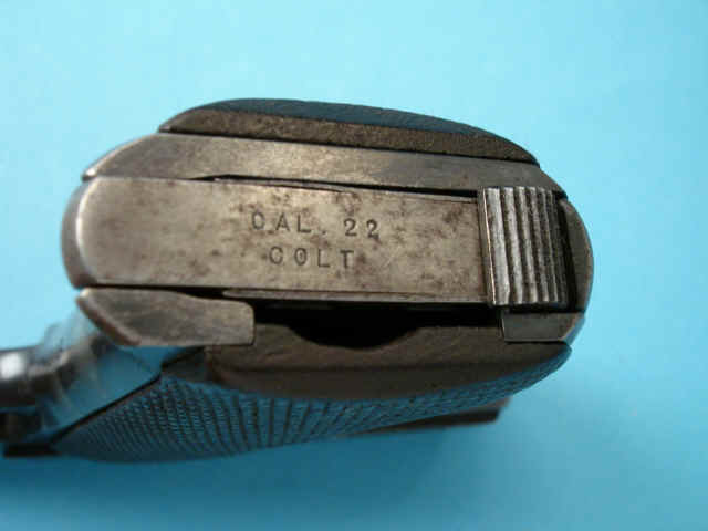 Serial no. 14613, .22 caliber, 6 1/2-inch barrel. Blued finish. Checkered walnut grips.
