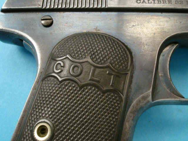 Serial no. 50670, .32 caliber, 4-inch barrel with bushing. Blued finish. Hard rubber Colt grips.