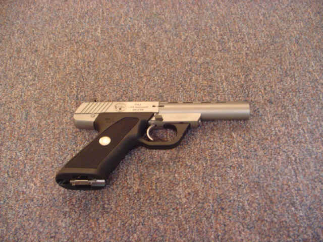 Serial no. PH42089, .22 long rifle, no. 486 of 525 pistols and so marked. With extra magazine; in blue hard plastic carrying lock case and in cardboard slipbox.