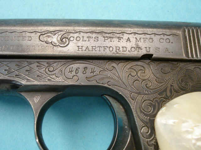 Engraved Colt Model 1908 Semi-Automatic Pocket Pistol, with Pearl Grips