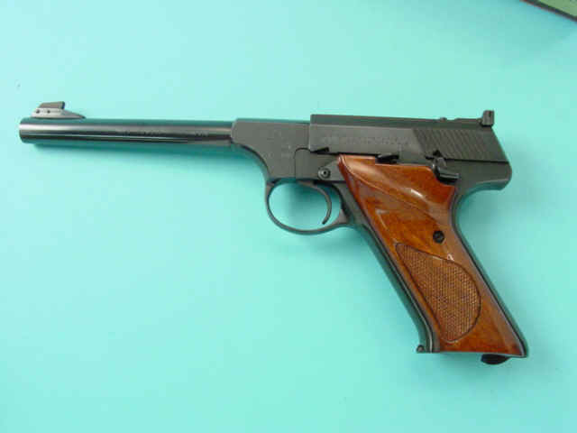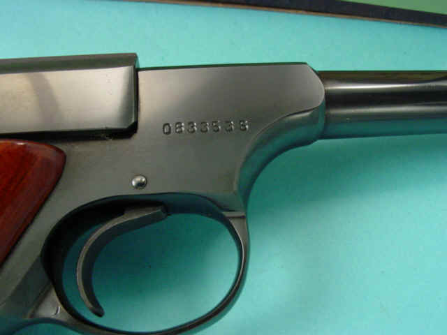 Serial no. 083353-S, .22 long rifle, 6-inch barrel, blued finish; checkered walnut grips with thumbrest. Box with brochures.