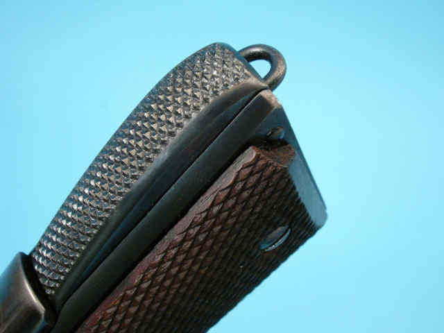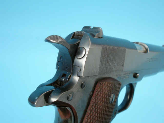 Serial no. C138771, .45 caliber, 5-inch barrel. Blued finish. Checkered walnut grips. Lanyard ring. Sold together with two period magazines, a cleaning brush and contained in a simulated alligator hide travel bag with zip closure.
