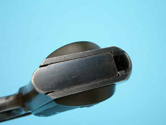 Serial no. 27070, .38 rimless caliber, 4 3/8-inch barrel. Blued finish. Fire-blued trigger. Case-hardened hammer. Colt hard rubber grips.