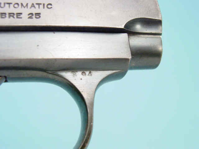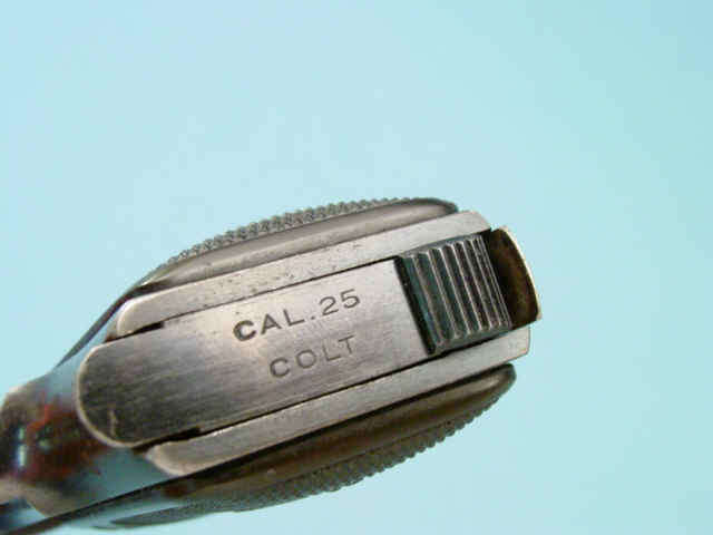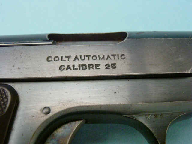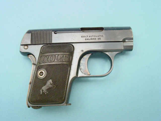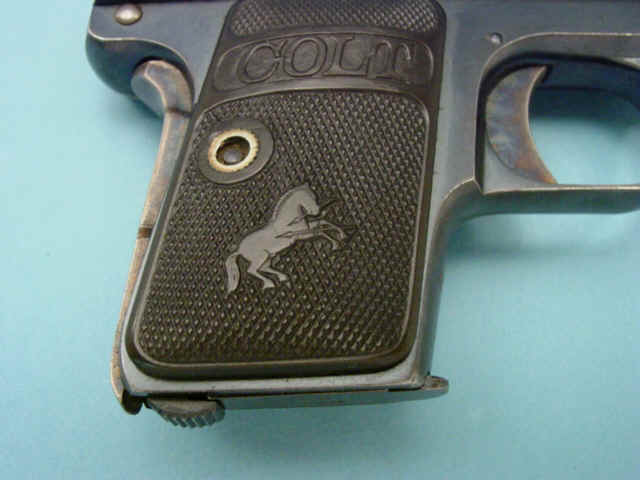 Serial no. 251962, .25 caliber, 2-inch barrel. Blued finish. Case-hardened trigger. Colt hard rubber grips.
