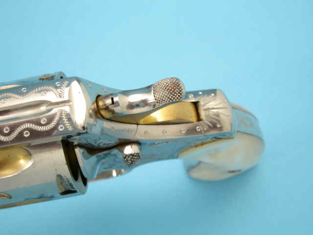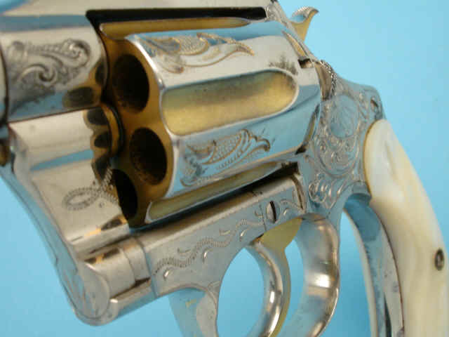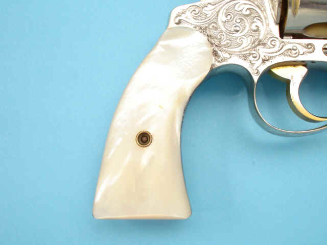 trigger; mother-of-pearl grips. Helfricht scroll and border engraved with punched dot