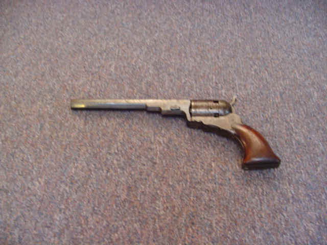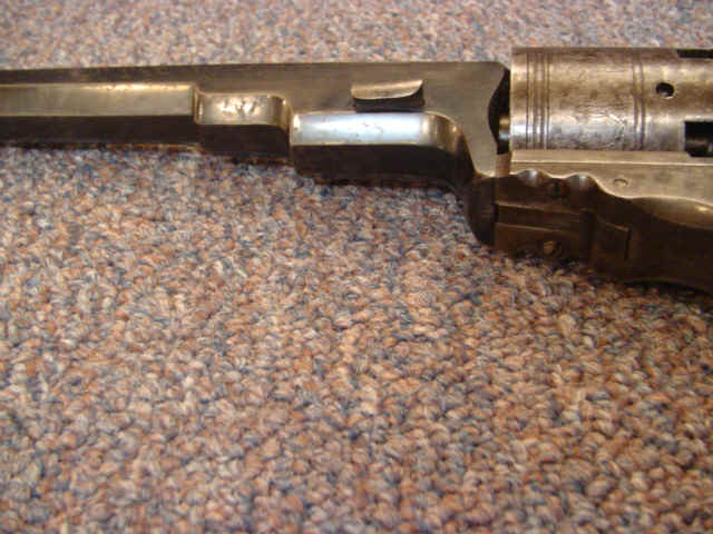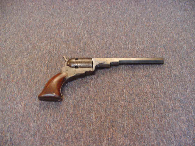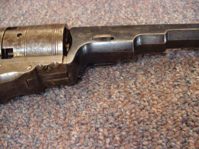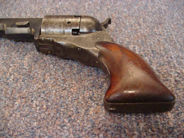 Serial no. 33, .36 caliber, 5 shot cylinder with stagecoach holdup roll scene. 7