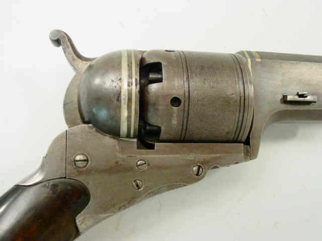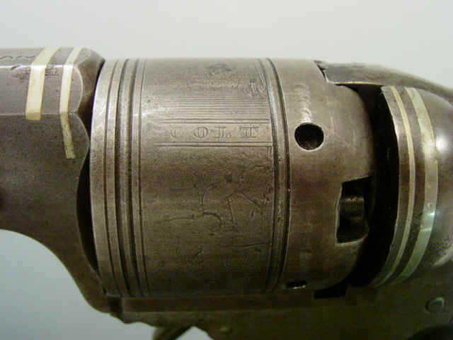 sight blade at muzzle; COLT within band as part of cylinder roll; German silver inlaid