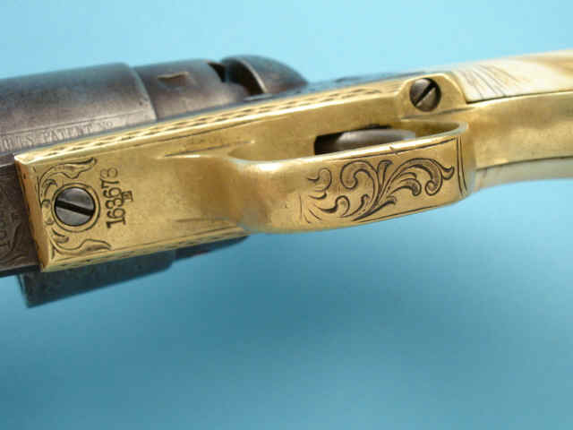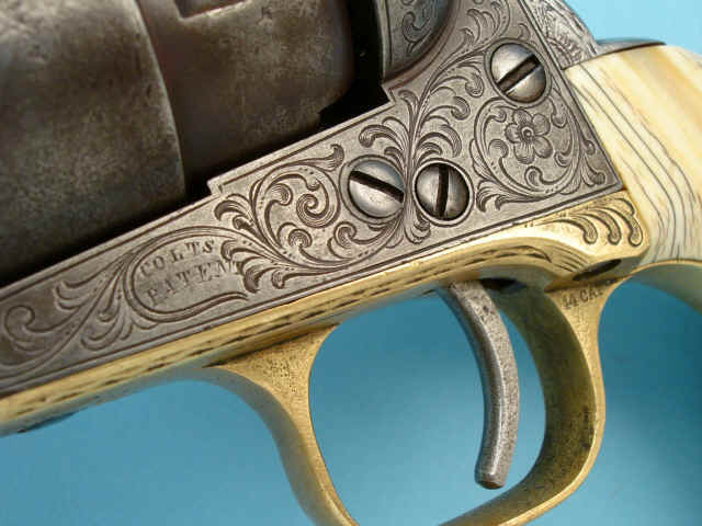 york address. Factory scroll-engraved. Left side of frame engraved: Colt's/Patent. Brass