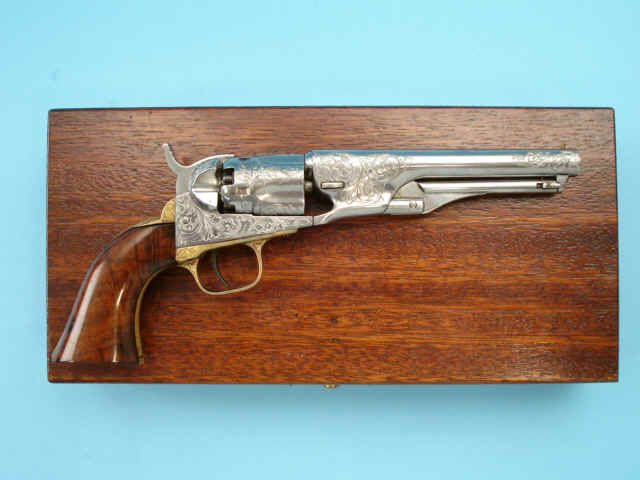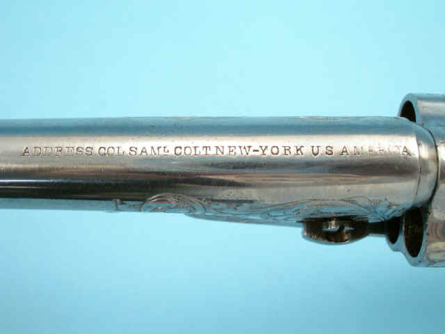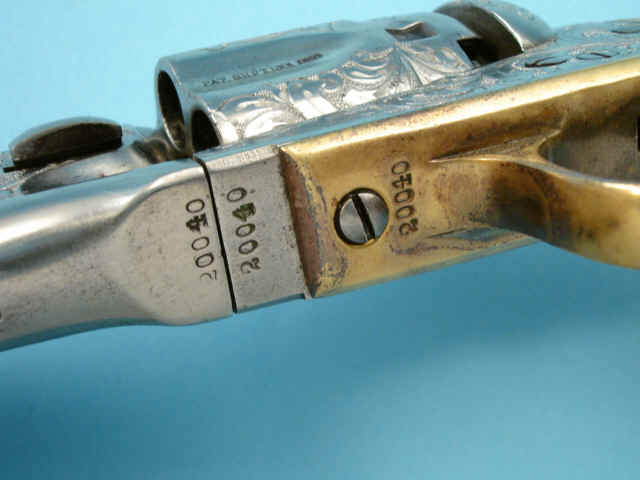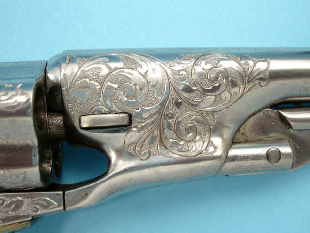 Serial no. 20040, .36 caliber, 5 1/2-inch barrel. Custom scroll-engraved in the white.