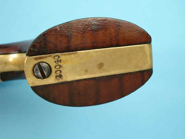 Brass triggerguard and gripstrap assembly. Varnished deluxe walnut grips. Contained in