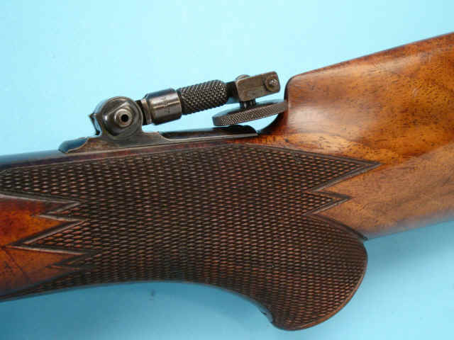 Finely checkered deluxe marble-grained walnut fore-end and pistol-grip stock with vacant