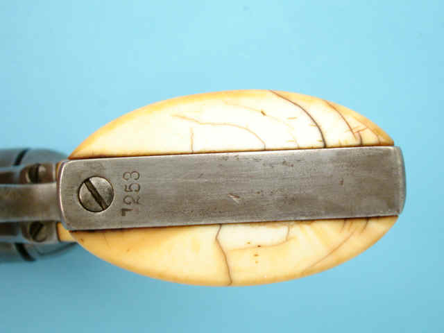 nickel-plated; one piece ivory grips. Matching number 1253 on cylinder periphery. Sold