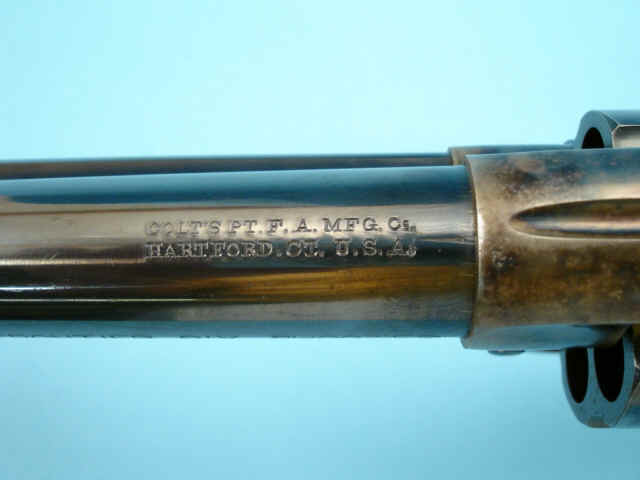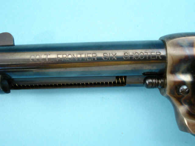 two line address marking; COLT FRONTIER SIX-SHOOTER on left side of barrel; two-line