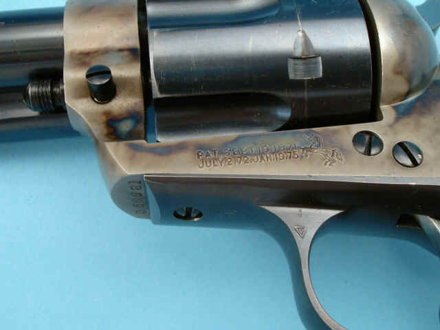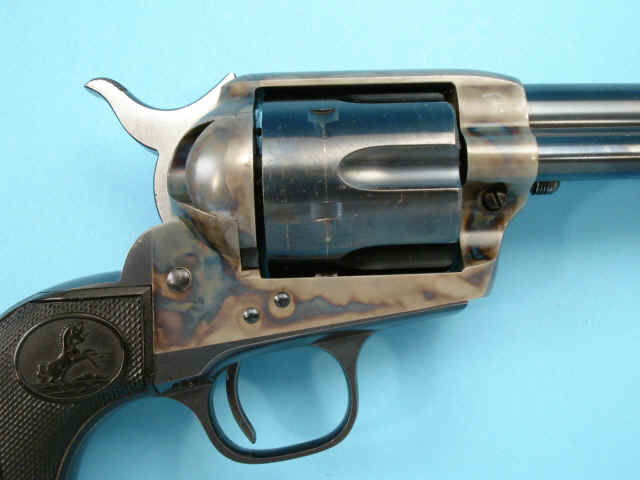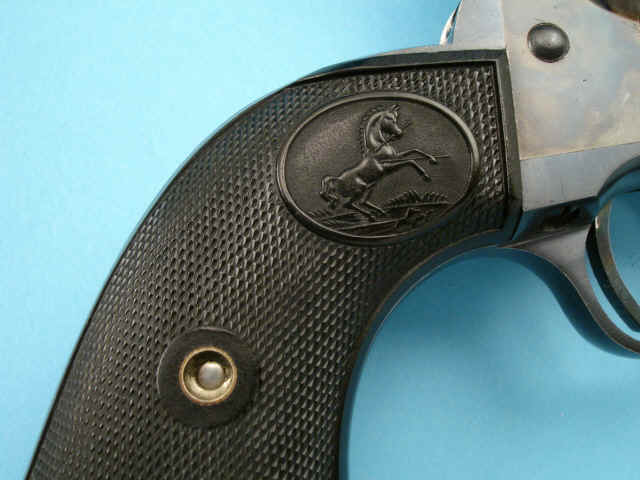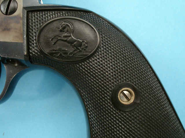 rampant colt logo; blued finish with case-hardened frame; checkered hard rubber rampant
