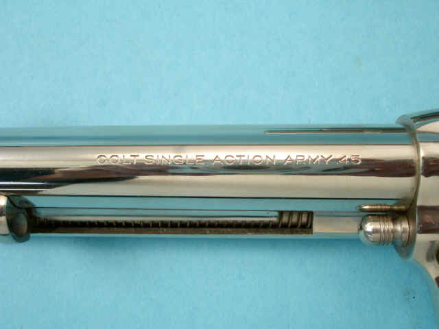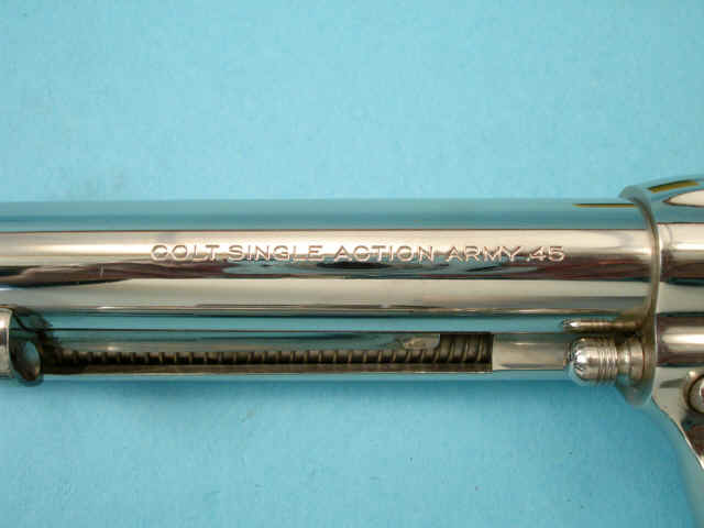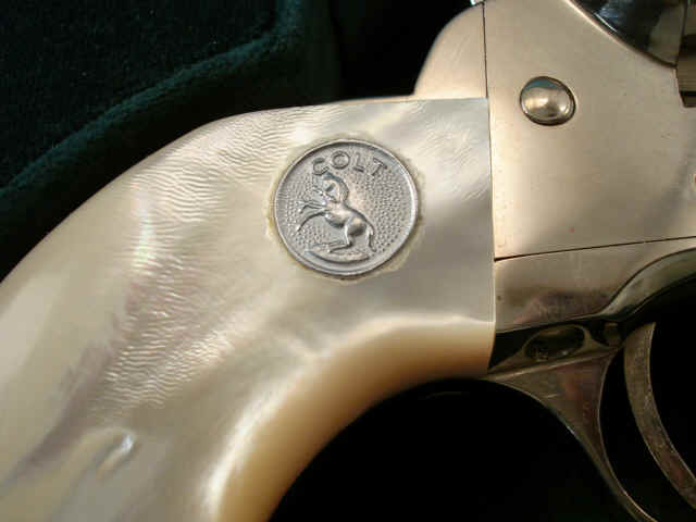 mother-of-pearl grips with nickel-plated flush rampant colt medallion inlays. Varnished