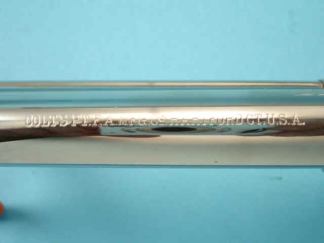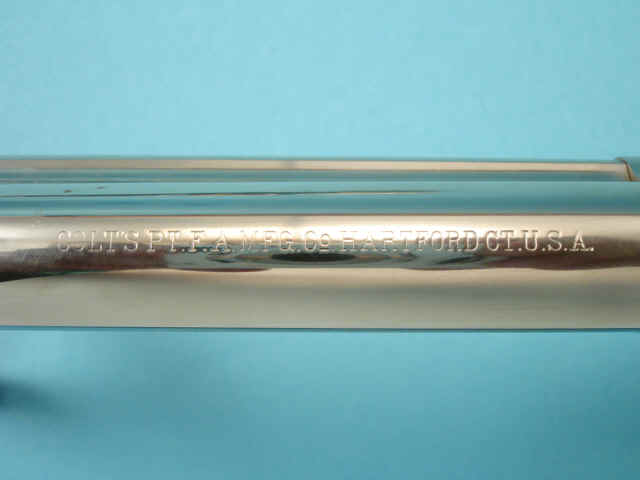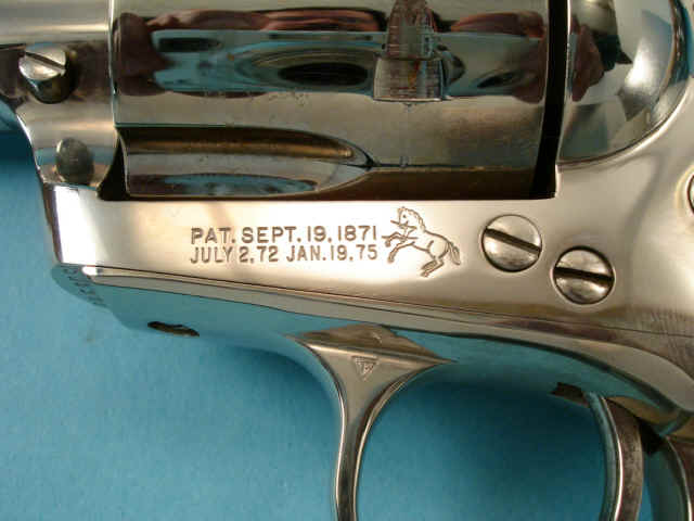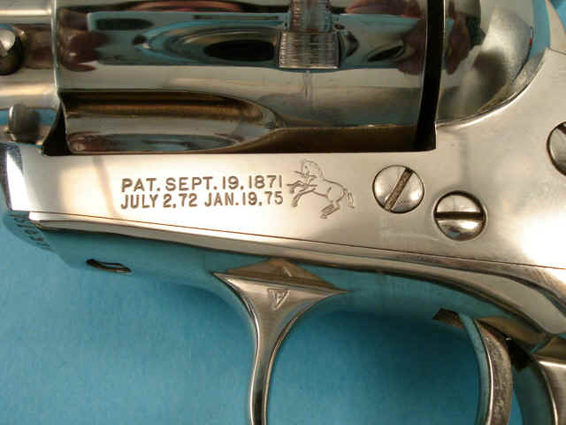 patent frame marking on left side, with rampant colt logo to right; nickel-plated finish;