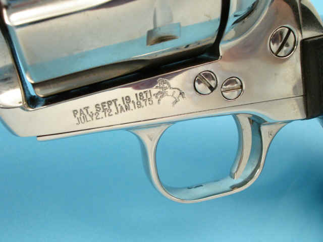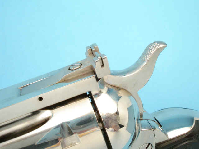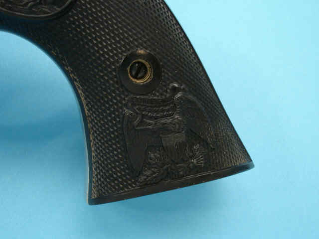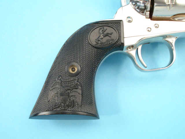Nickel-plated finish. Eagle hard rubber grips. Contained in glass-topped walnut display