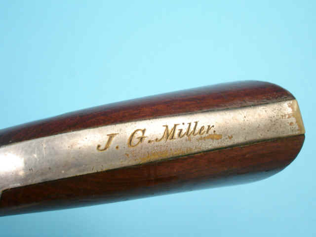 assembly. Large triggerguard. Backstrap inscribed: J.G. Miller. Varnished walnut grips.
