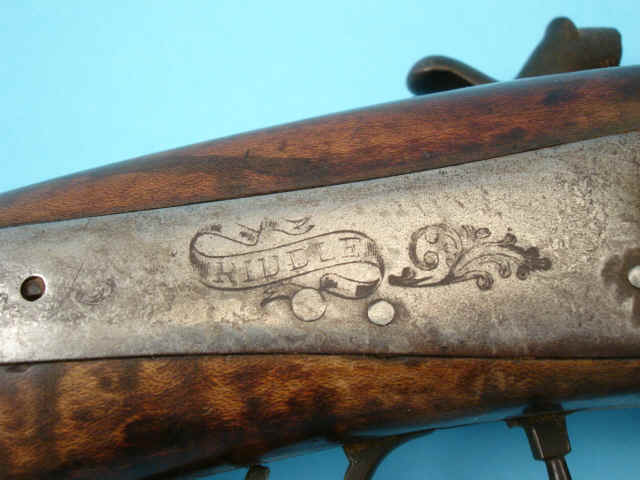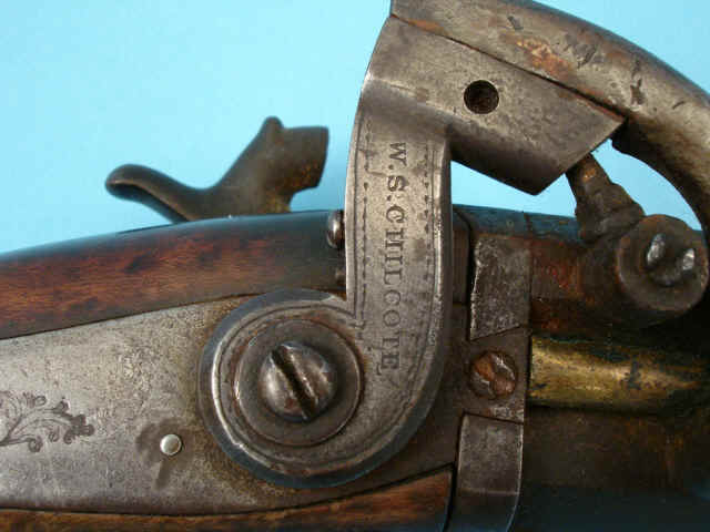Barrels marked: W.S. Chilcote. Open sights. Blued finish. Percussion locks marked: Riddle.