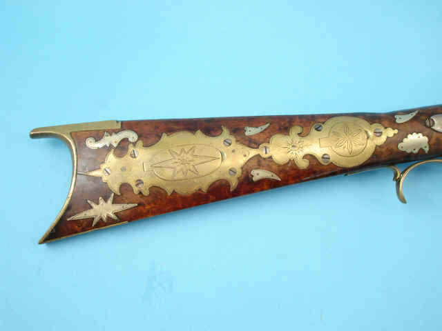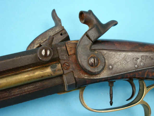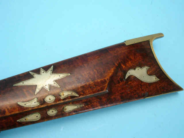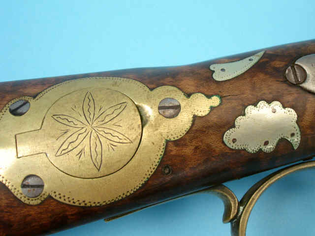 Set-triggers. Tiger maple stock with brass furniture and engraved brass and German silver