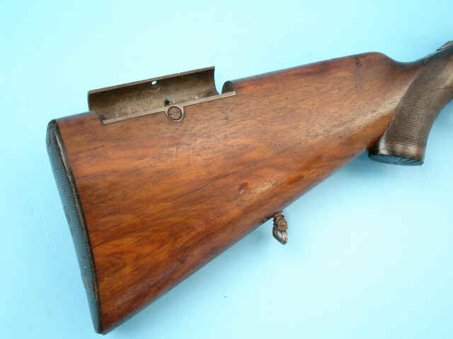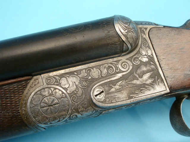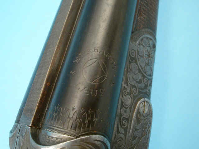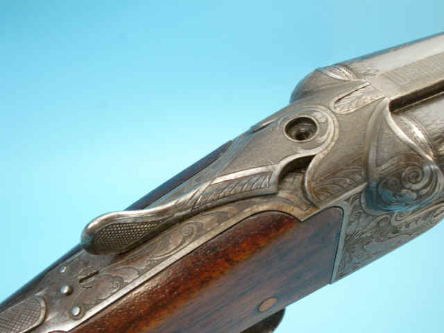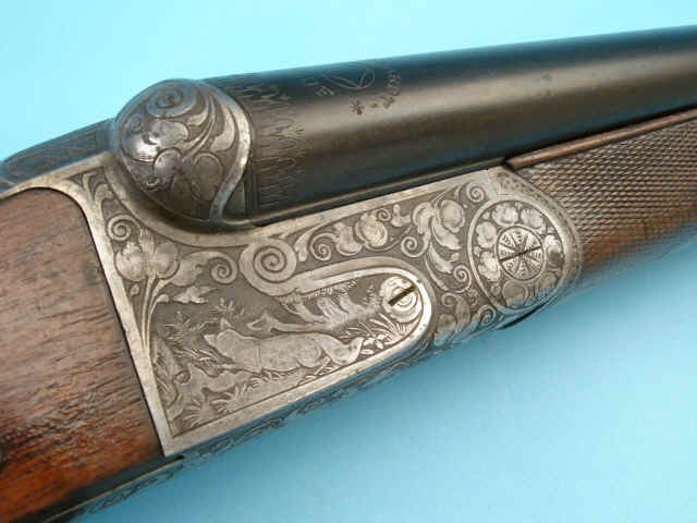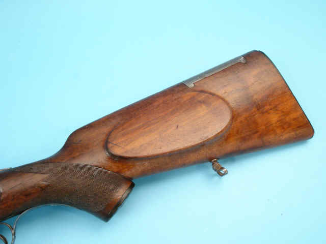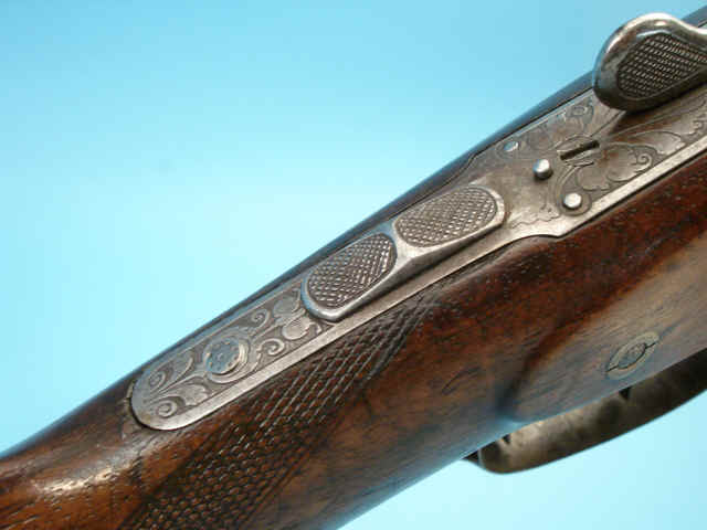 Finely checkered splinter fore-end with Deeley-style release. Sling swivels. Cartridge