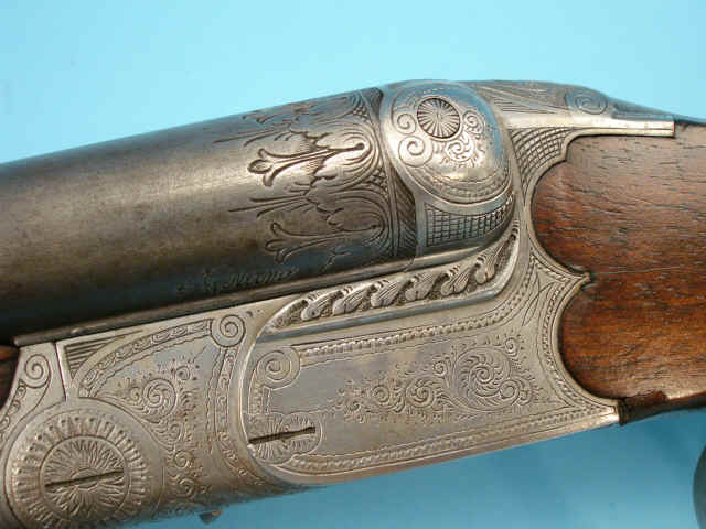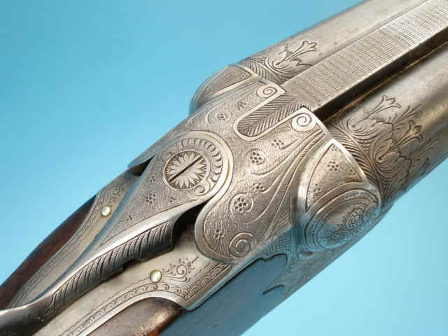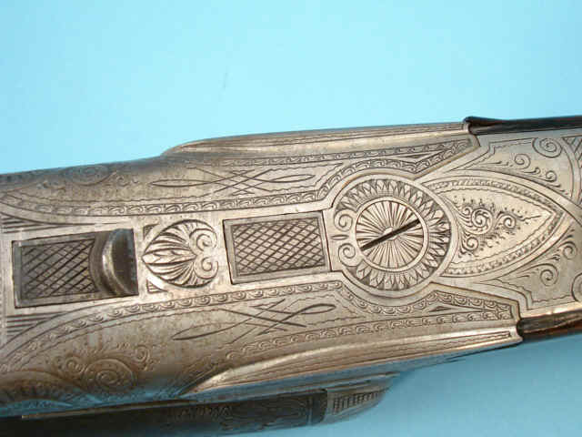 of fine foliate scroll and geometric designs. Greener-style cross bolt. Extractor.