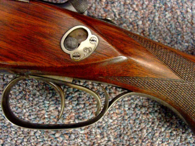 forend mounts, triggerguard and frame bottom plate. Varnished checkered select walnut