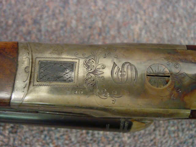 triggerguard and top lever; proof on bottom of each shotgun barrel includes eagle motif